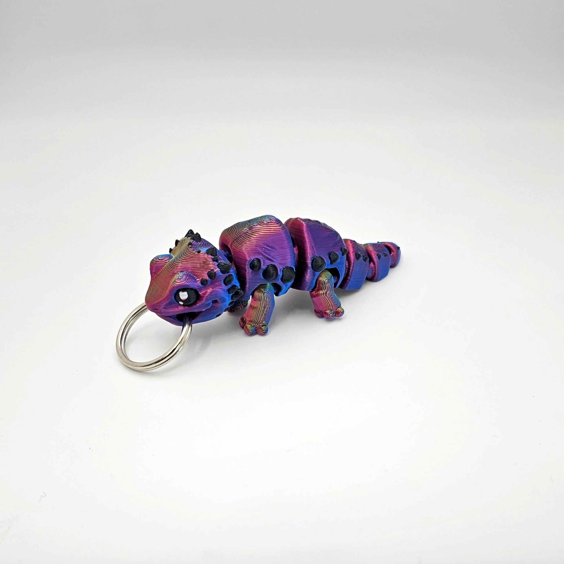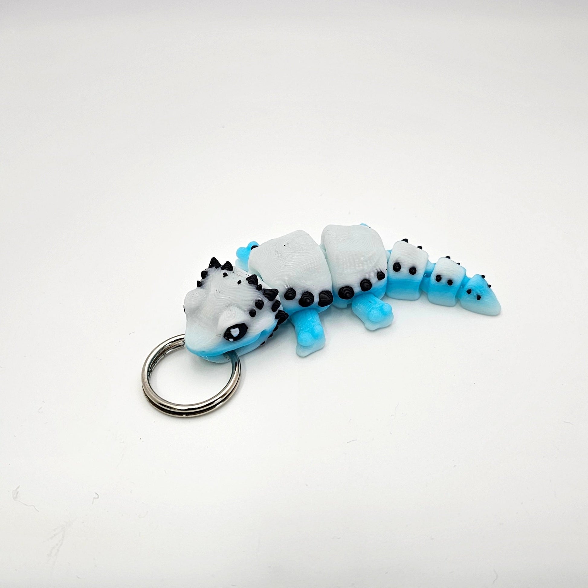 Experience the magic of a baby bearded dragon with our 3d printed keychain. Its unique articulating design adds a touch of fun to your daily routine. Attach it to your keyring and take this little dragon with you wherever you go!